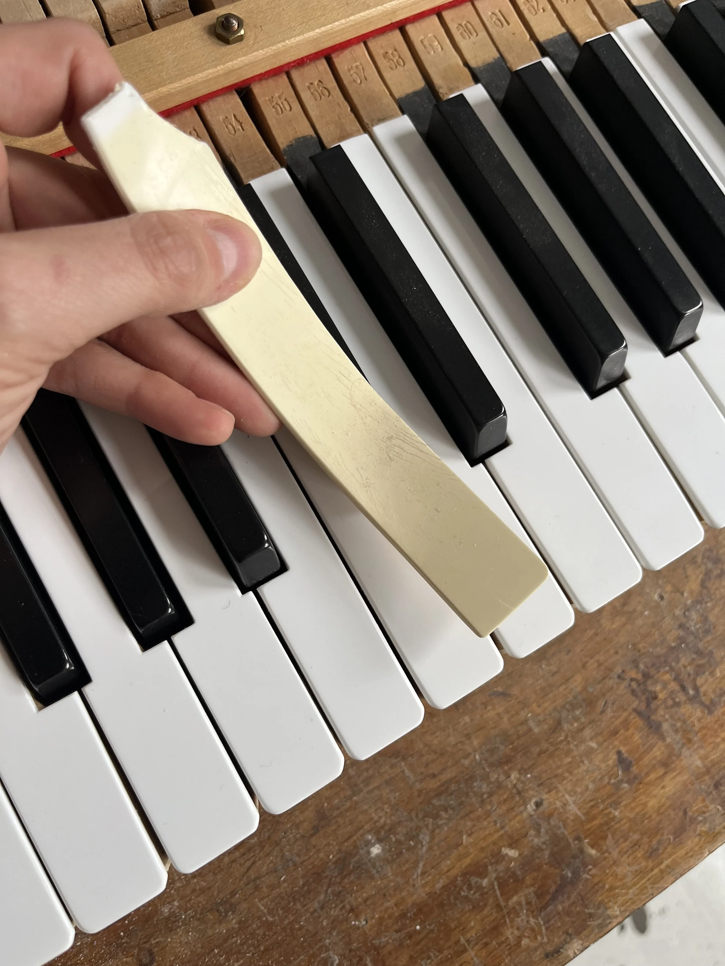 This 1920’s Steinway originally had ivory keytops. Sometime in the 60’s, they were replaced with plastic. I replaced the plastic with a salvaged set of ivories from another piano. 2024