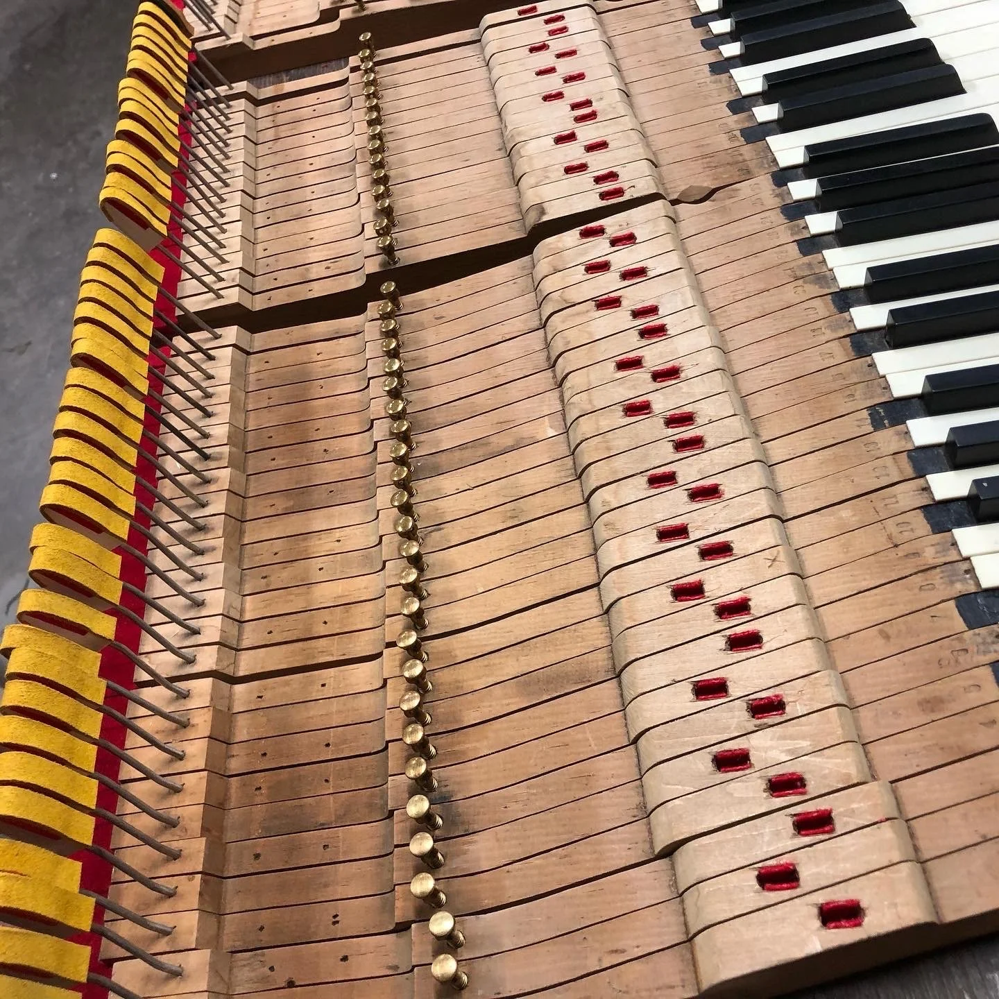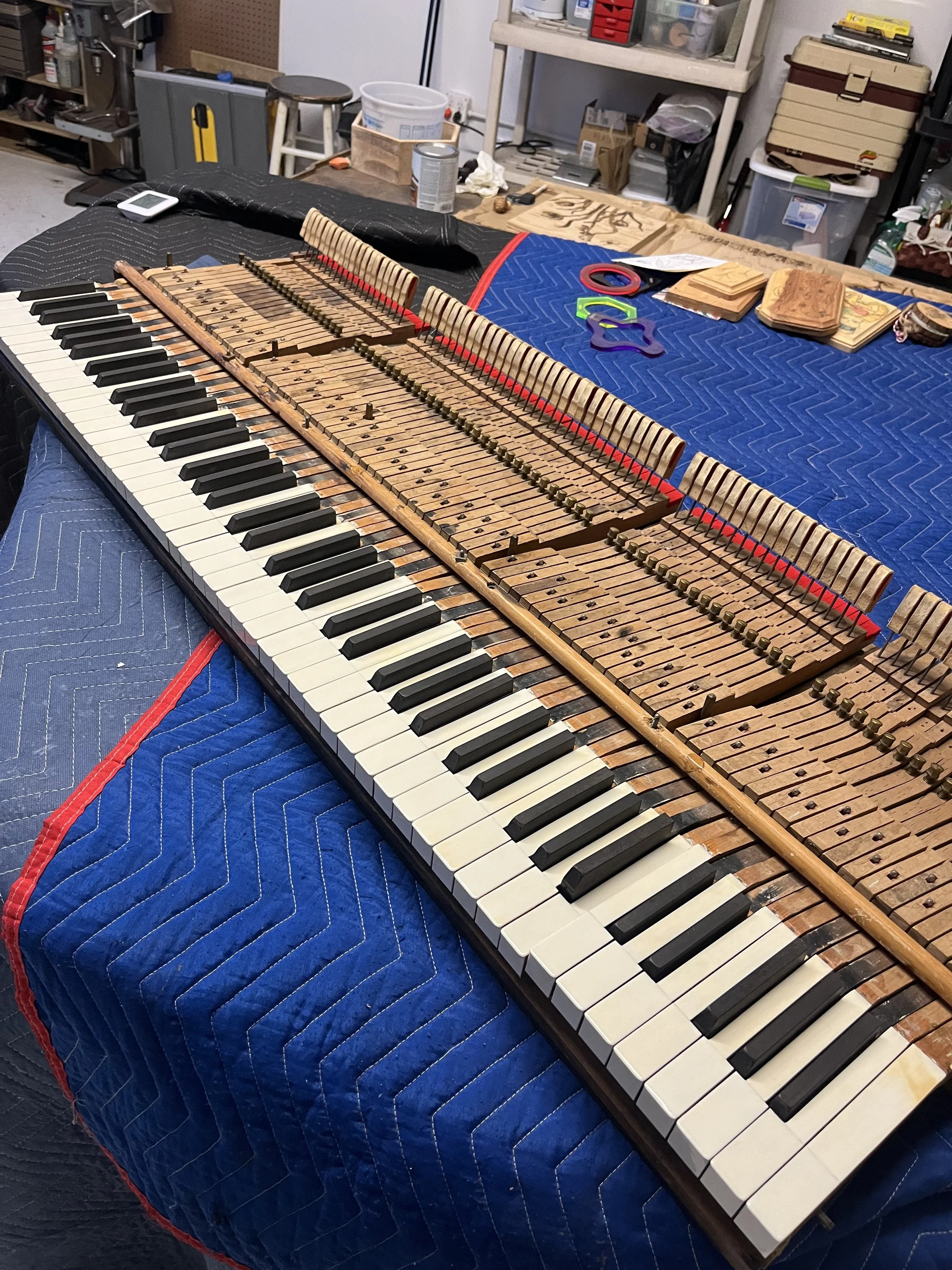 A close up of the treble section on the 1964 Baldwin after rebuilding.