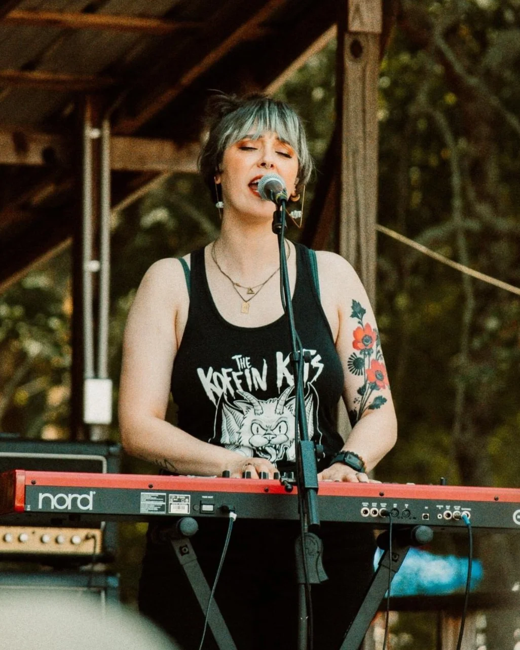 Artist Chiara Angelicola (aka Bird Call) performs alongside Magik Magik Trio from the Magik Magik Orchestra at Viracocha. Arrangement by Britney Kaplan