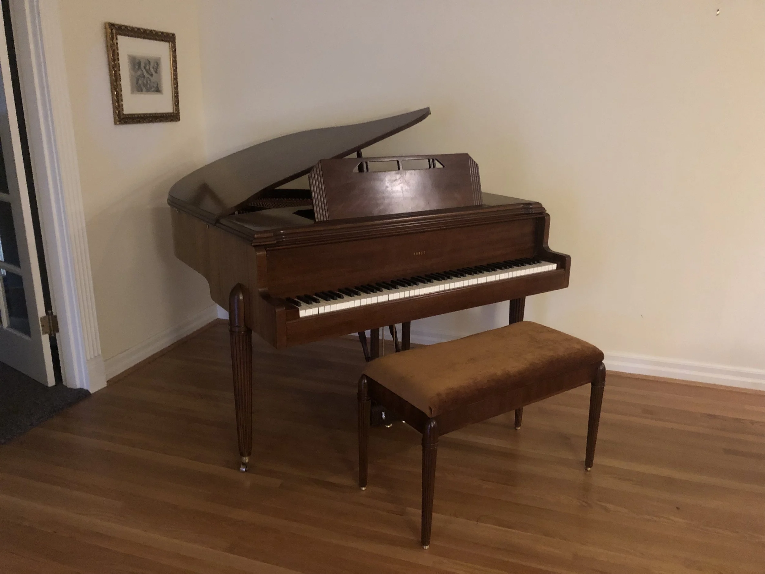 Baldwin Hamilton 1948 rebuild completed in 2019. New strings, hammers, felts, minor repairs, and a full regulation. Refinish done by Spot Finish Repair.