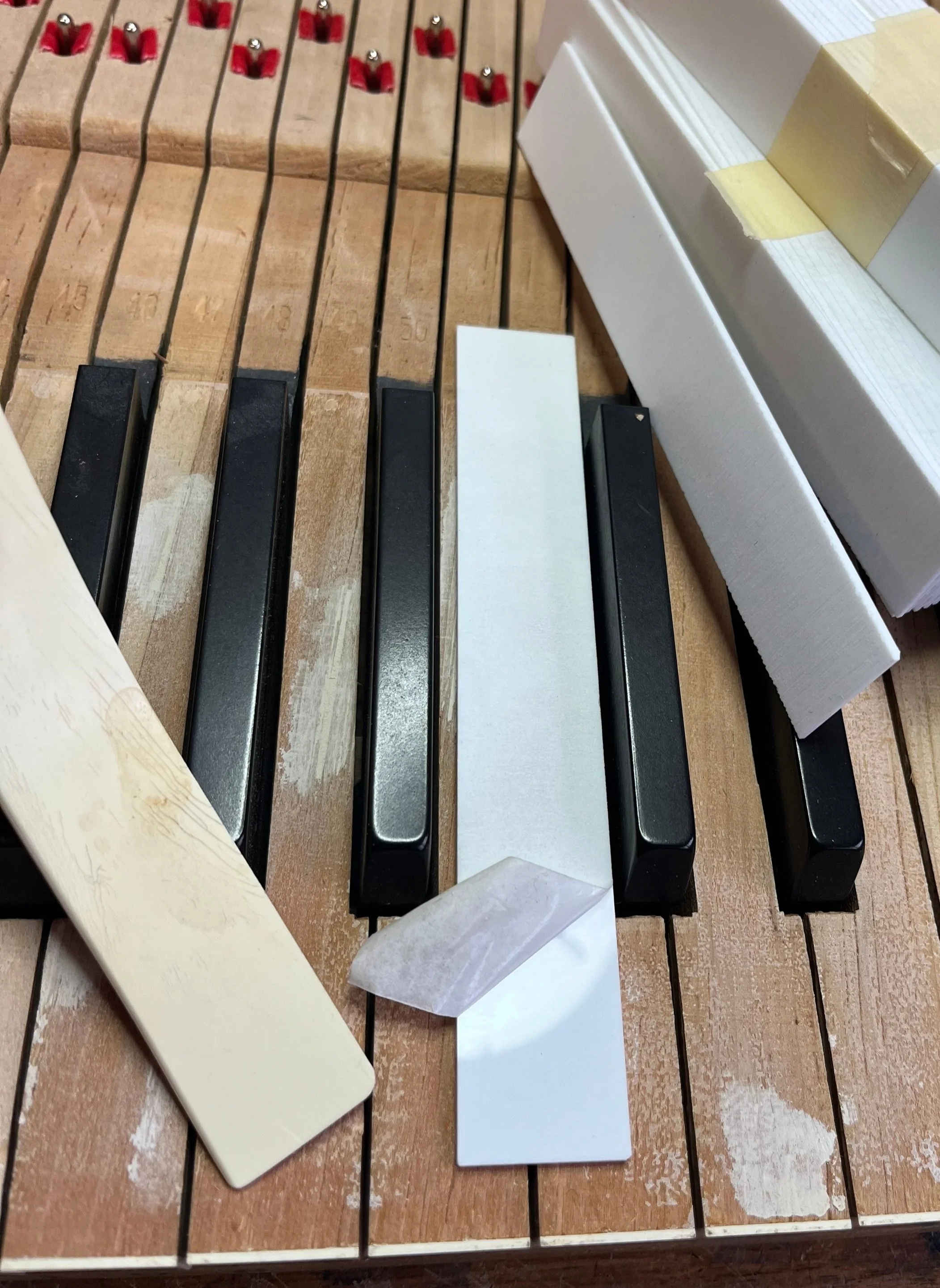 Steinway keytops come in blank form and are handcrafted to each individual key.