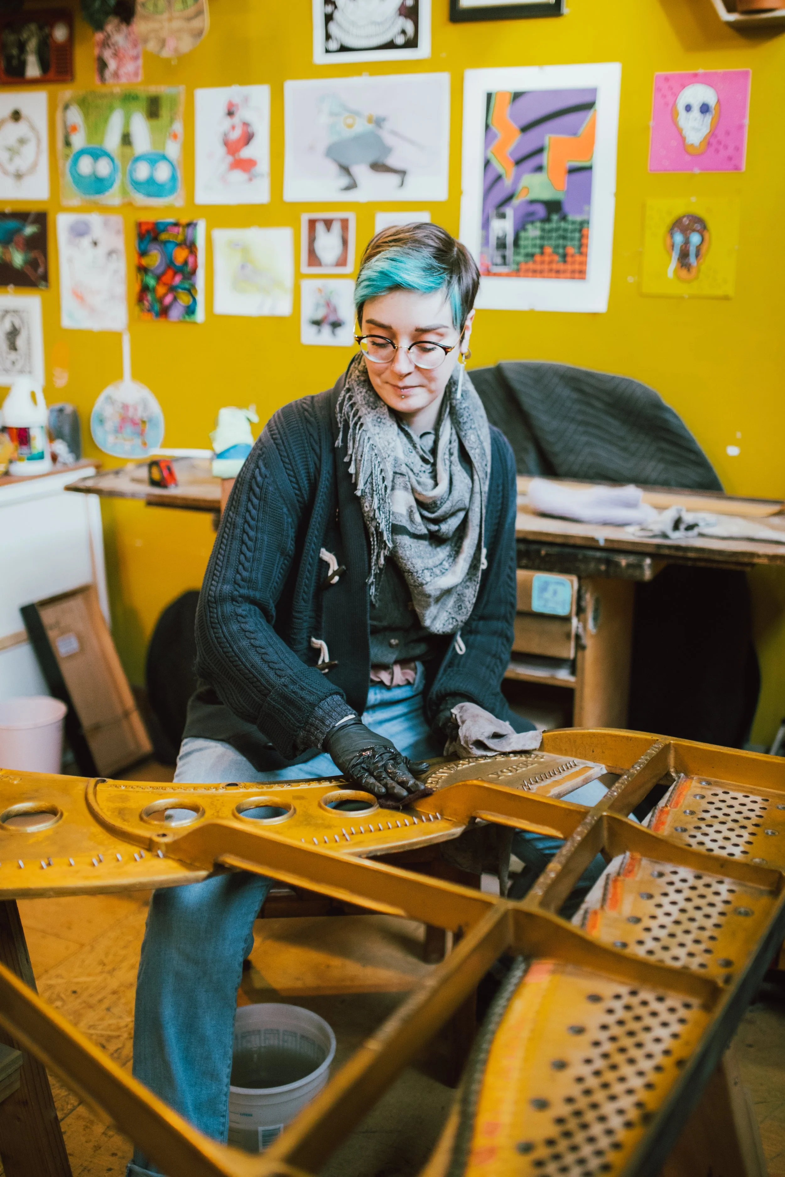 This front panel was saved from a piano that could not be fixed. It’s in the process of becoming a new piece of art.
